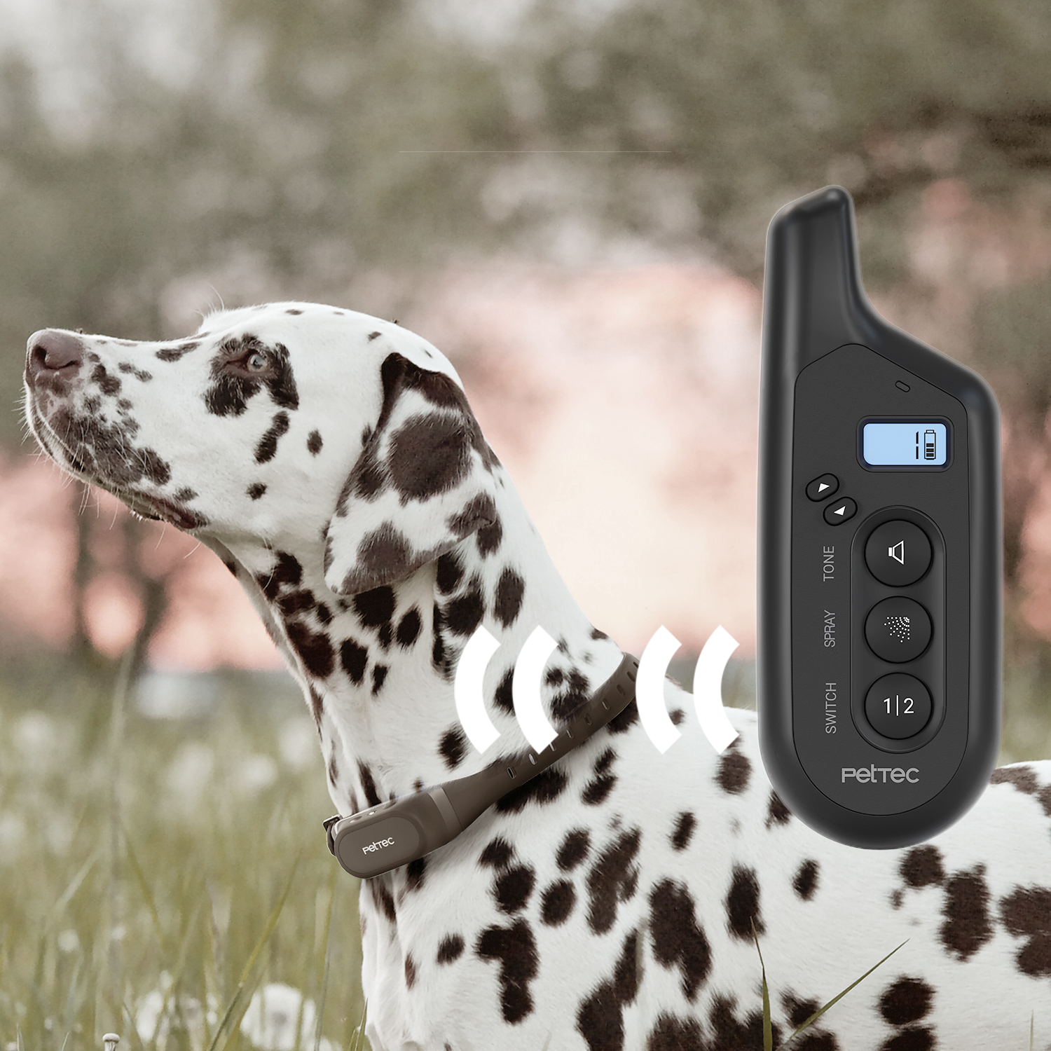 Hundetraining mit 600m Reichweite. Trainieren Sie Ihren Hund einfach und effektiv mit Ton- und Spraysignal aus der Distanz per Fernbedienung oder als automatischen Antibell Trainer.
